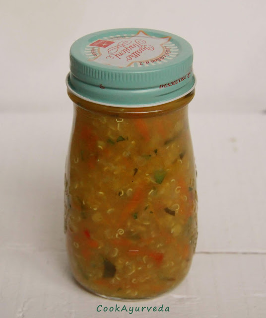 Pierwszy raz zróbcie tak jak ja ugotowałam. Następnym razem zamieńcie jeden składnik np. marchew zastąpcie dynią. Kolejny raz zastąpcie dwa składniki np. marchew i komosę zastąpcie dynią i kaszą jaglaną. Ten przepis to baza, może mieć mnóstwo odsłon.